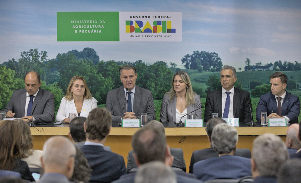 Nesta terça-feira (4), o ministro da Agricultura e Pecuária, Carlos Fávaro, recebeu na sede do Ministério a presidente do Instituto Pensar Agropecuária (IPA), Tania Zanella,