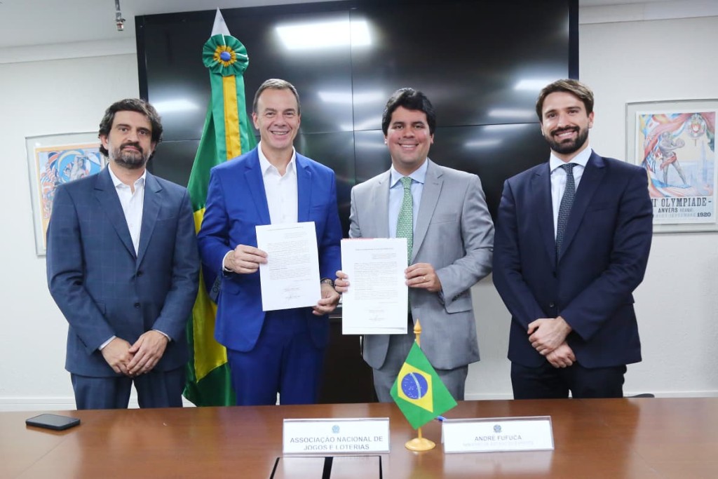 O ministro do Esporte, André Fufuca, assinou nesta quarta-feira (22) acordo de cooperação com a Associação Nacional de Jogos e Loterias (ANJL), com o objetivo