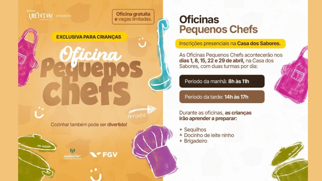 Casa dos Sabores promove oficina Pequenos Chefs no Centro Histórico de Diamantino