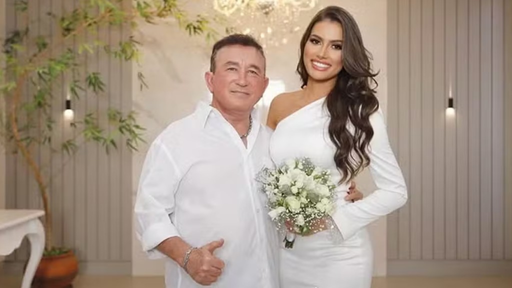 A Miss Mato Grosso 2024, Calita Franciele Miranda, de 23 anos, compartilhou nesta sexta-feira (14), fotos de seu casamento no civil com Amado Batista, de 73. “Um dos dias mais especiais de nossas vidas”, escreveu a jovem na legenda da publicação. Os pombinhos oficializaram a união ontem em uma cerimônia discreta em um cartório de Água Boa, no Mato Grosso.