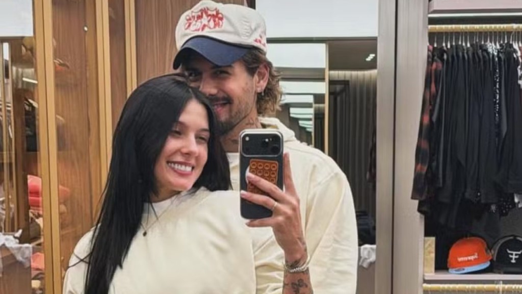 Ana Castela, de 22 anos, reencontrou o namorado, o cantor Zé Felipe, 27, na noite desta segunda-feira (24), e registrou o momento. Os dois posaram juntinhos no closet da artista, em foto publicada nos Stories. Na imagem, os dois aparecem colados um ao outro, com a cantora exibindo parte da barriga definida.