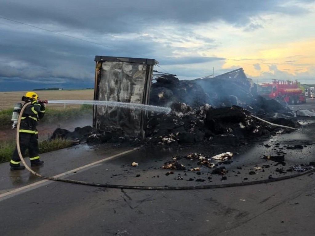 O Corpo de Bombeiros Militar de Mato Grosso (CBMMT) combateu, na tarde desta quinta-feira (12.2), um incêndio em uma carreta carregada com plumas de algodão às margens da BR-163, em Nova Mutum (a 241 km de Cuiabá).