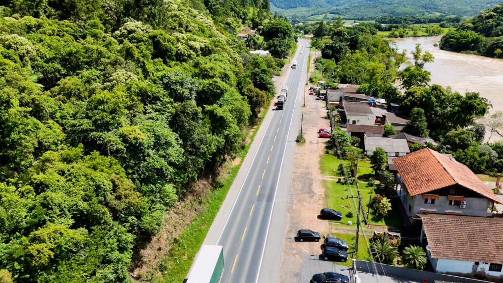 No trecho entre as cidades de Rodeio e Ascurra, nos quilômetros 80 e 99, foram realizadas fresagem, recomposição, aplicação de camada de reforço e microrrevestimento, além de melhorias na sinalização horizontal e vertical.