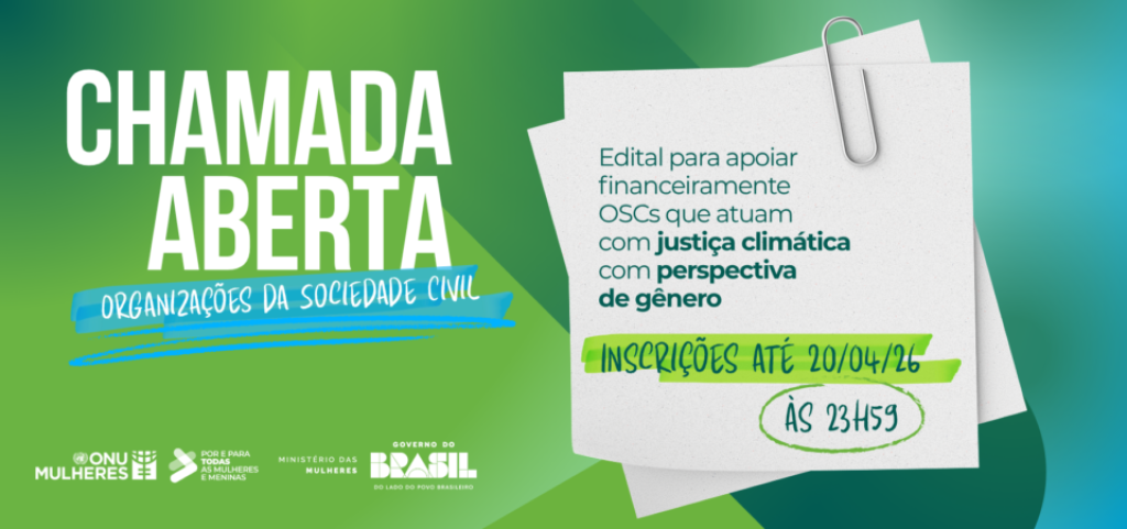 Está aberto o edital de chamamento para Organizações da Sociedades Civil (OSCs) que atuam na promoção da justiça climática com perspectiva de gênero. A iniciativa é uma