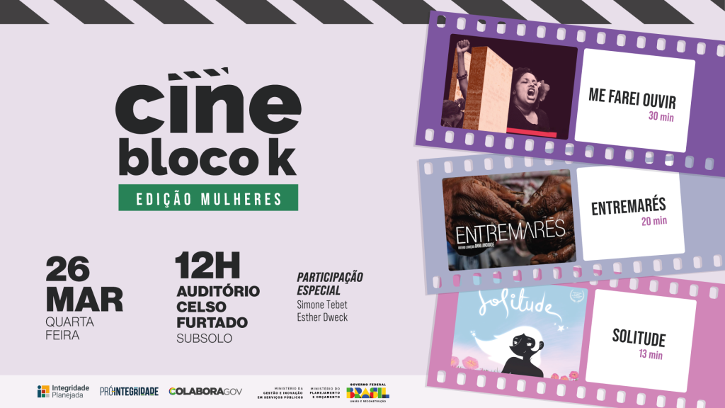 A 11ª edição do Cine Bloco K, promovida pelo Ministério da Gestão e da Inovação em Serviços Públicos (MGI) em parceria com Ministério do Planejamento e Orçamento (MPO), acontecerá nesta quarta-feira (26/3), a partir das 12 horas, no Auditório do Subsolo do Bloco K, na Esplanada dos Ministérios. O encontro será alusivo ao Dia Internacional da Mulher, celebrado em 8 de março, e integra as ações do MGI em comemoração à data.