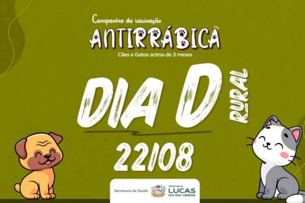 Na próxima sexta-feira (22), a Prefeitura de Lucas do Rio Verde, por meio da Secretaria de Saúde, realiza a Campanha de Vacinação Antirrábica nas comunidades rurais do município.