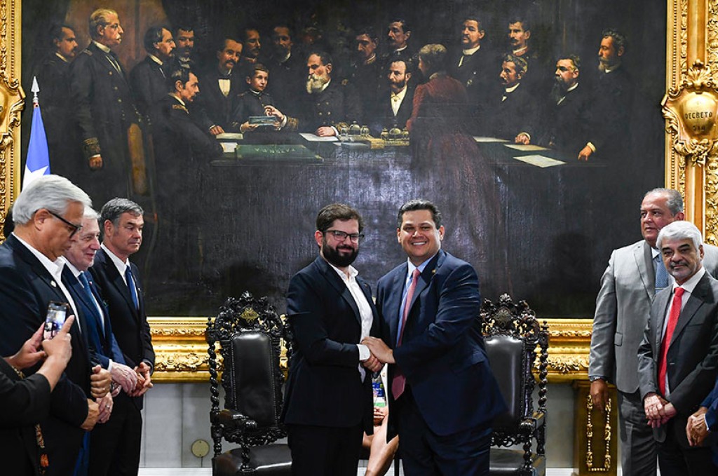 Em visita oficial ao Brasil, o presidente do Chile, Gabriel Boric, foi recebido na tarde desta quarta-feira (23) pelo presidente do Senado e do Congresso, Davi Alcolumbre. Ambos ressaltaram a importância dos Parlamentos e da democracia para a América do Sul e para o mundo. Eles também conversaram sobre relações comerciais e turísticas, segurança pública e de fronteiras, e programas sociais de ambos os países, entre outros temas.
