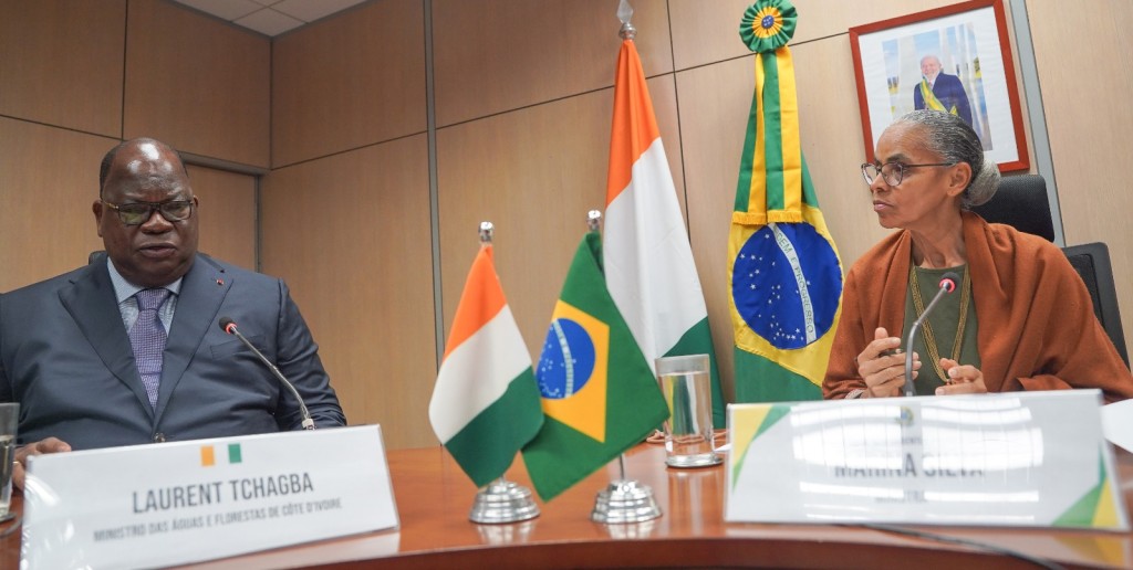 A ministra do Meio Ambiente e Mudança do Clima, Marina Silva, e o ministro das Águas e Florestas da Costa do Marfim, Laurent Tchagba, se reuniram nesta quinta-feira (10/7), em Brasília (DF). A missão técnica da Costa do Marfim no Brasil inclui também audiências no Instituto Brasileiro do Meio Ambiente e dos Recursos Naturais Renováveis (Ibama) e no Serviço Florestal Brasileiro (SFB) nesta sexta-feira (11/7).