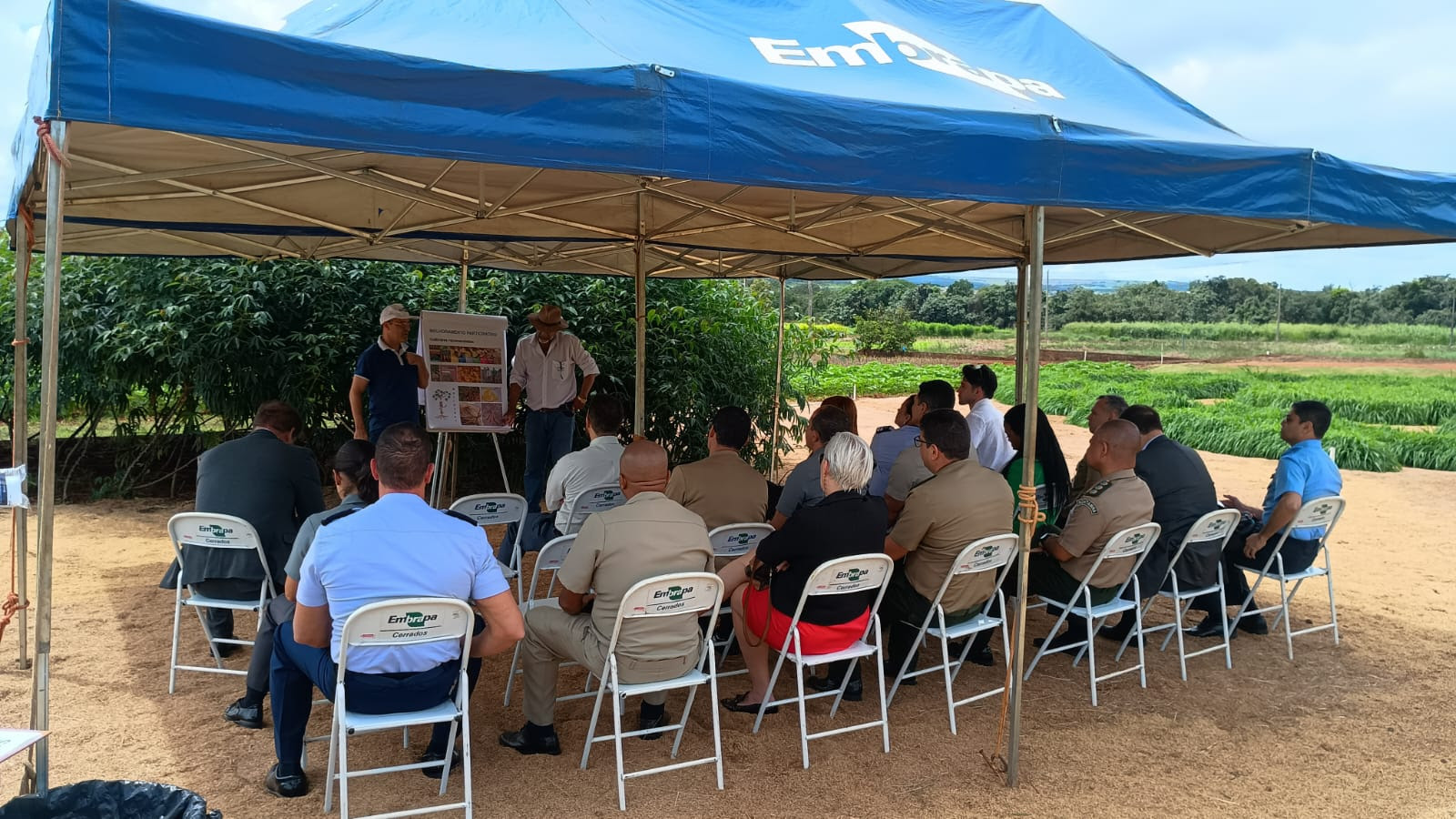 A programação incluiu visita de campo a experimentos de Integração Lavoura-Pecuária-Floresta (ILPF), mandioca e café no Cerrado, além da apresentação de ferramentas eletrônicas voltadas ao manejo ambiental integrado da paisagem produtiva no bioma, como o Webambiente e o Webpasto. Participaram das atividades os pesquisadores Lourival Vilela, Robélio Marchão e Karina Pulrolnik (equipe ILPF), Eduardo Alano (mandioca), Adriano Delly (café) e José Felipe Ribeiro (manejo ambiental).