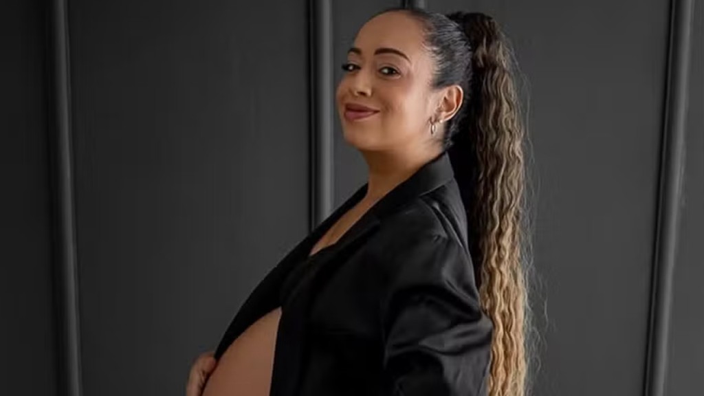 Aretha Oliveira, de 40 anos, registrou a reta final da gravidez com um ensaio para as lentes da fotógrafa Débora Oliveira.