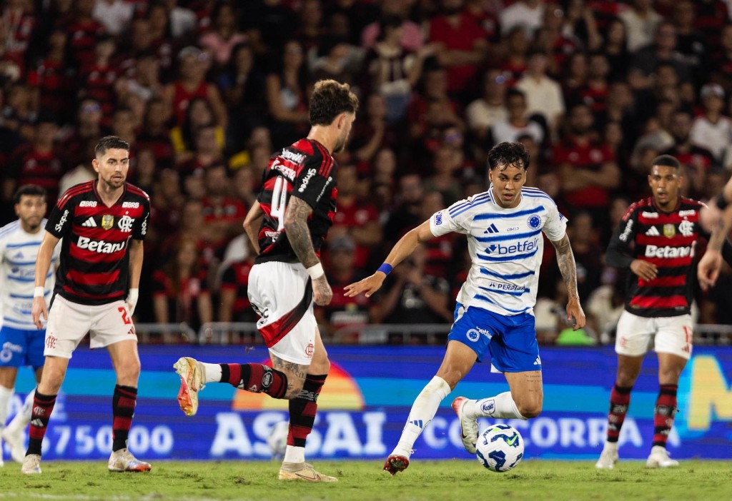 O Cruzeiro, por sua vez, demonstrou solidez defensiva e buscou explorar os contra-ataques. A melhor oportunidade da Raposa no primeiro tempo surgiu aos 33 minutos, quando Kaio Jorge recebeu na área e finalizou para grande defesa de Rossi. No rebote, Christian também parou no goleiro flamenguista, e a bola ainda sobrou para Kaio Jorge, que mandou em cima de Alex Sandro, mantendo o placar inalterado.
