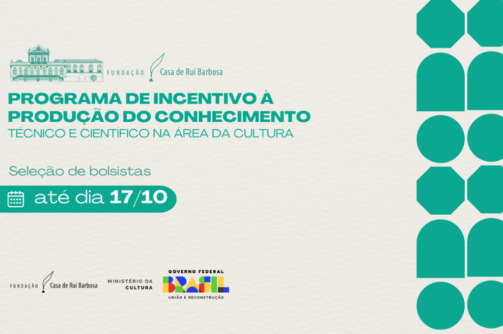 A Fundação Casa de Rui Barbosa (FCRB) está com inscrições abertas até 17 de outubro de 2025 para o Programa de Incentivo à Produção do Conhecimento Técnico e Científico na Área da Cultura (PIPC). A iniciativa tem como objetivo formar, treinar e capacitar recursos humanos em programas, projetos e atividades voltados à pesquisa e ao desenvolvimento tecnológico.