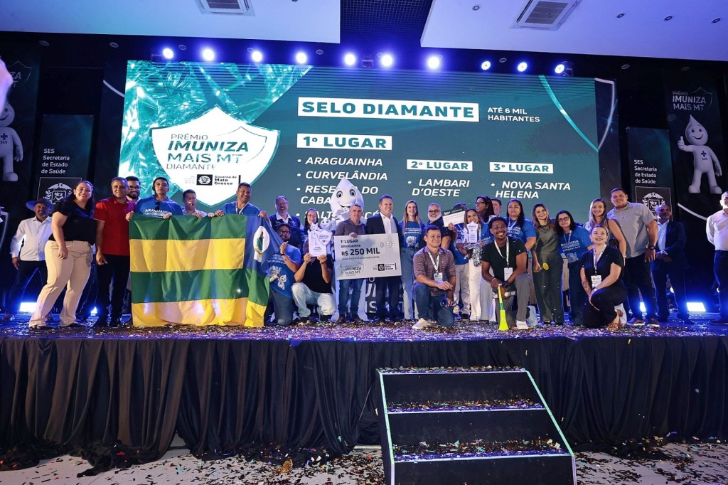 A Secretaria de Estado de Saúde (SES-MT) entregou, na noite desta quarta-feira (4.3), prêmios com valores entre R$ 30 mil e R$ 500 mil aos 42 municípios melhor classificados em 2025 no Programa Imuniza Mais MT. Ao todo, foram investidos R$ 6,28 milhões na 5ª edição da premiação.