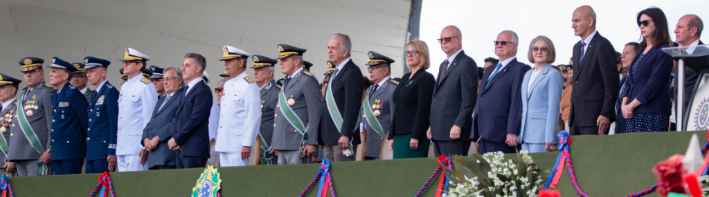 Durante a leitura da Ordem do Dia, o Comandante do Exército, General de Exército Tomás Miguel Miné Ribeiro Paiva, ressaltou a importância do preparo permanente da Força diante dos desafios contemporâneos. Segundo o General Tomás, “preparar-se para o futuro é imperativo para manter a credibilidade dissuasória da Força e assegurar que o braço forte continue apto a defender o Brasil, oferecendo a mão amiga nos momentos de dificuldade”, e destacou o avanço da participação feminina na instituição.