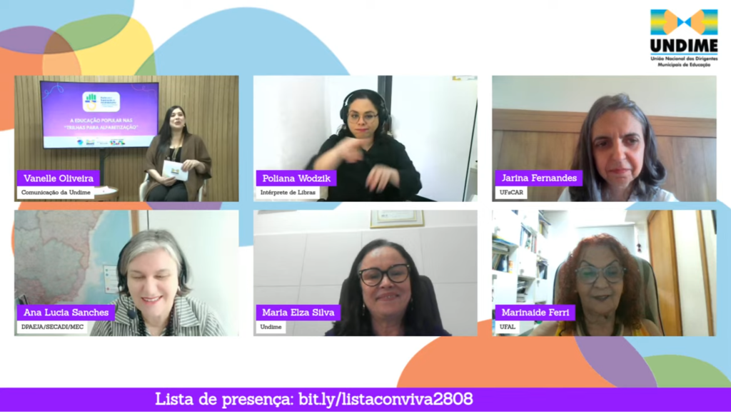 O evento, uma parceria entre a Secretaria de Educação Continuada, Alfabetização de Jovens e Adultos, Diversidade e Inclusão (Secadi) do MEC e a União Nacional dos Dirigentes Municipais de Educação (Undime), foi transmitido pelo canal do MEC no YouTube e pelo Conviva Educação.