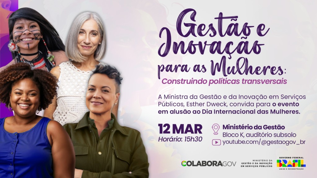Com o tema “Gestão e Inovação para as Mulheres: construindo políticas transversais” o encontro contará com a presença da ministra da Gestão, Esther Dweck, da ministra das Mulheres, Cida Gonçalves, e de líderes de diferentes áreas do MGI que farão breves relatos sobre políticas e iniciativas em andamento nos seus setores, voltadas à equidade de gênero e à proteção das mulheres.