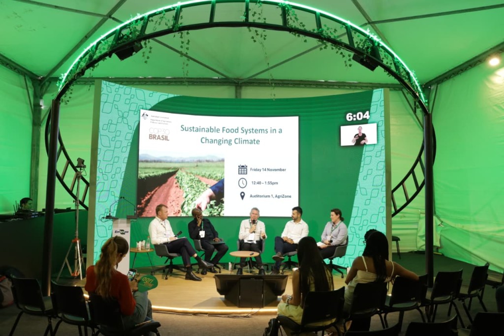 O painel “Sustainable Food Systems in a Changing Climate”, realizado nesta sexta-feira (14), na AgriZone, durante a COP 30, reuniu especialistas da Austrália, Canadá, África e Brasil para discutir como a mudança climática pressiona a produção de alimentos e quais soluções podem fortalecer a segurança alimentar global. Promovido pelo Department of Agriculture, Fisheries and Forestry da Austrália, o encontro destacou caminhos para integrar ciência, inovação e políticas públicas no apoio a agricultores e na modernização dos sistemas agroalimentares.