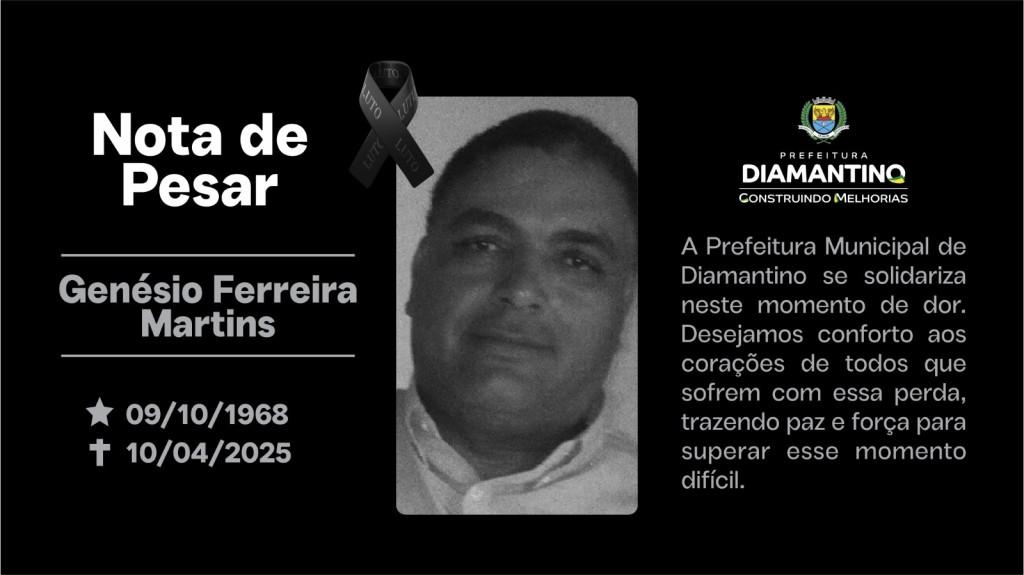 É com profundo pesar que a Administração Municipal de Diamantino comunica o falecimento do senhor Genésio Ferreira Martins.
