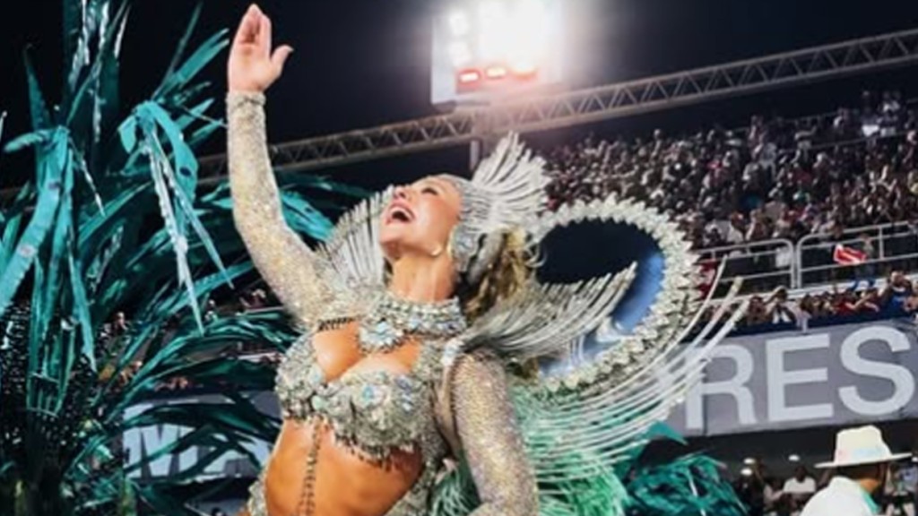 A ex-rainha de bateria elogiou o desemprenho da escola na Marquês de Sapucaí, no Rio de Janeiro, e declarou. “A Mina é… Nunca terei palavras suficientes pra agradecer, @granderio !”, escreveu ela na legenda da publicação.