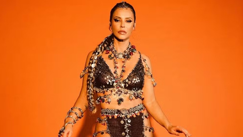 Paolla Oliveira, de 42 anos, brilhou nesta terça-feira (14), no ensaio da Grande Rio, escola de samba na qual é rainha da bateria. Nas redes sociais, a atriz compartilhou cliques da sua fantasia e uma foto de bastidores, na qual aparece fazendo topless enquanto começa a se arrumar.