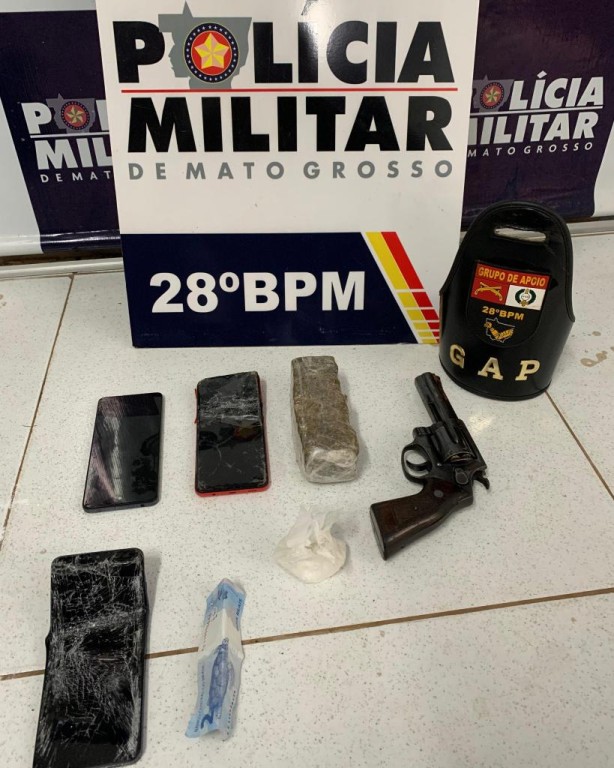 Policiais militares do 28º Batalhão apreenderam um revólver calibre 38, uma barra de maconha e uma porção de cocaína, na noite desta quarta-feira (11.6), durante abordagem a uma residência em São Pedro da Cipa (154 km de Cuiabá). Na ação, um homem faccionado com extensa ficha criminal foi baleado, após confronto com as equipes e outro foi preso em flagrante por tráfico de drogas.