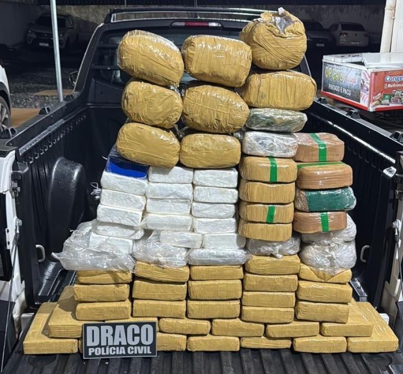Como no veículo havia somente uma caixa, os policiais foram até a casa do suspeito e, no quarto, encontraram outras caixas com grande quantidade de drogas. Ao todo, foram apreendidos 57 tabletes de maconha, 8 tabletes de Skunk, 15 de cocaína pura e 16 de pasta base.