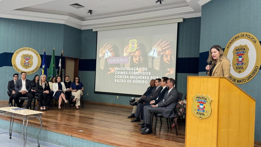 A Polícia Civil realizou, nesta quarta-feira (26.3), o “1º Seminário de Investigação de Crimes Cometidos contra Mulher por Razão de Gênero”, que reuniu 110 policiais, de 15 regionais de Mato Grosso, na Acadepol, em Cuiabá, para qualificá-los a utilizar os protocolos de “Investigação de Crimes Cometidos Contra Mulheres” e “Investigação de Crimes Sexuais”.