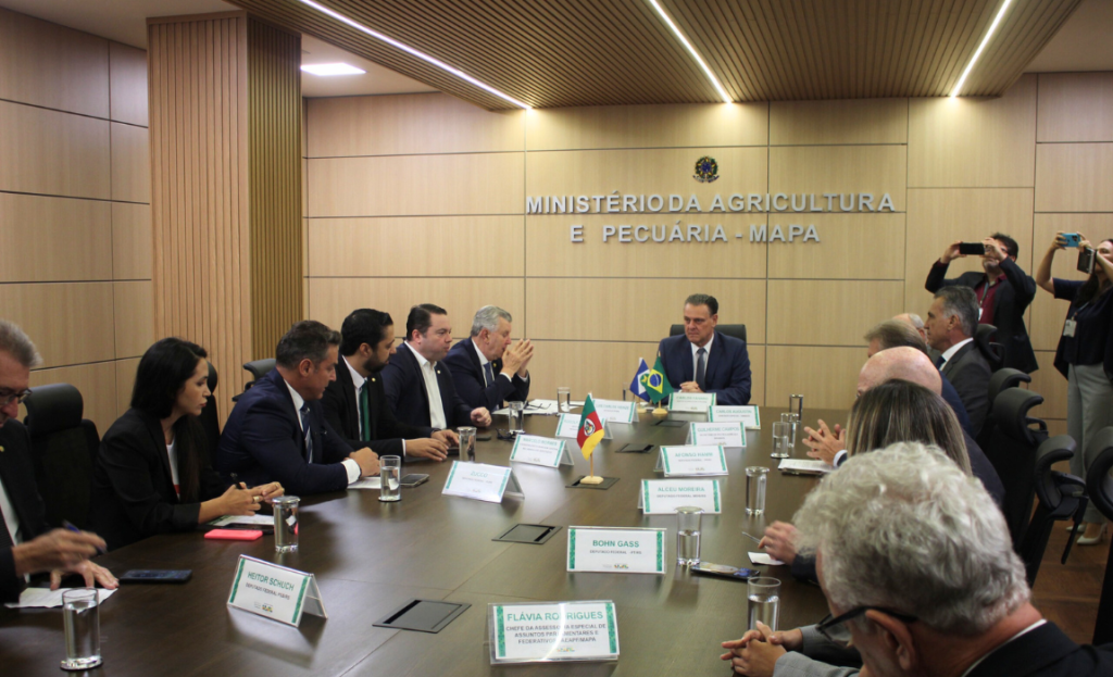 Representando o Mapa também estavam o chefe de Gabinete do ministro Carlos Fávaro, Wilson Taques, o assessor especial do ministro, Carlos Ernesto Augustin, o secretário de Política Agrícola, Guilherme Campos, o secretário-adjunto de Política Agrícola, Wilson Vaz, a chefe da Assessoria Especial de Assuntos Parlamentares e Federativos, Flávia Rodrigues.