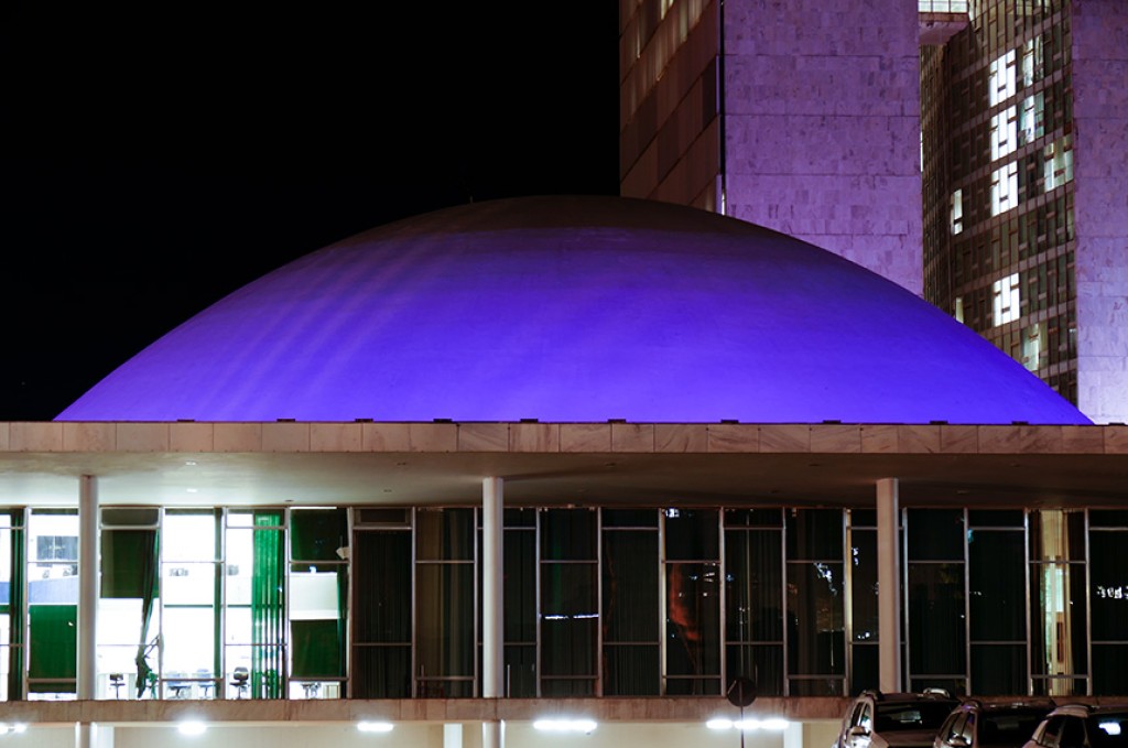 Também na programação do mês de março está a iluminação da fachada do Congresso Nacional na cor roxa, a partir desta sexta-feira (7).
