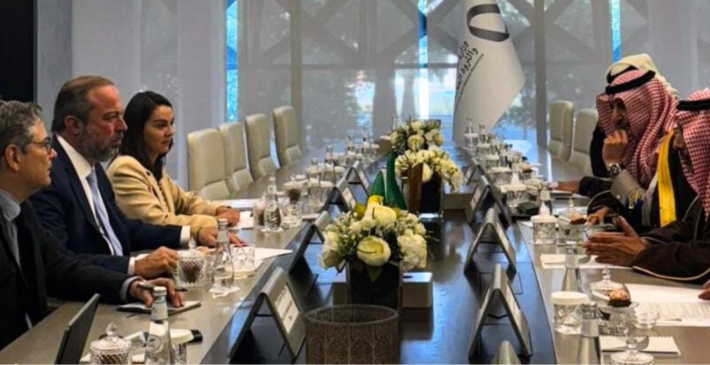 Em agenda oficial na Arábia Saudita, o ministro de Minas e Energia, Alexandre Silveira, participou, nesta segunda-feira (12/1), de reunião na sede do Ministério da Indústria e Recursos Minerais, em Riad, com o ministro saudita Bandar Al-Khorayef. O objetivo da reunião é aprofundar o diálogo bilateral e ampliar a cooperação estratégica no setor mineral.