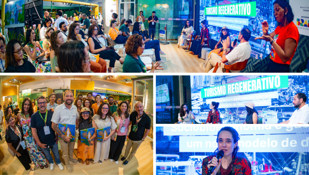 A diretora da ONG global Ambition Loop no Brasil, Renata Cabrera, reforçou que povos tradicionais são protagonistas da construção de soluções sustentáveis. Para ela, regeneração não é utopia: é desenvolvimento, renda e eficiência. “O sistema precisa de emprego e mecanismos que funcionem. O turismo tem um potencial gigantesco de ser uma economia limpa”, ressaltou. Ela destacou ainda a importância de organizar toda a cadeia produtiva do turismo gastronômico – do produtor ao prato servido ao visitante.